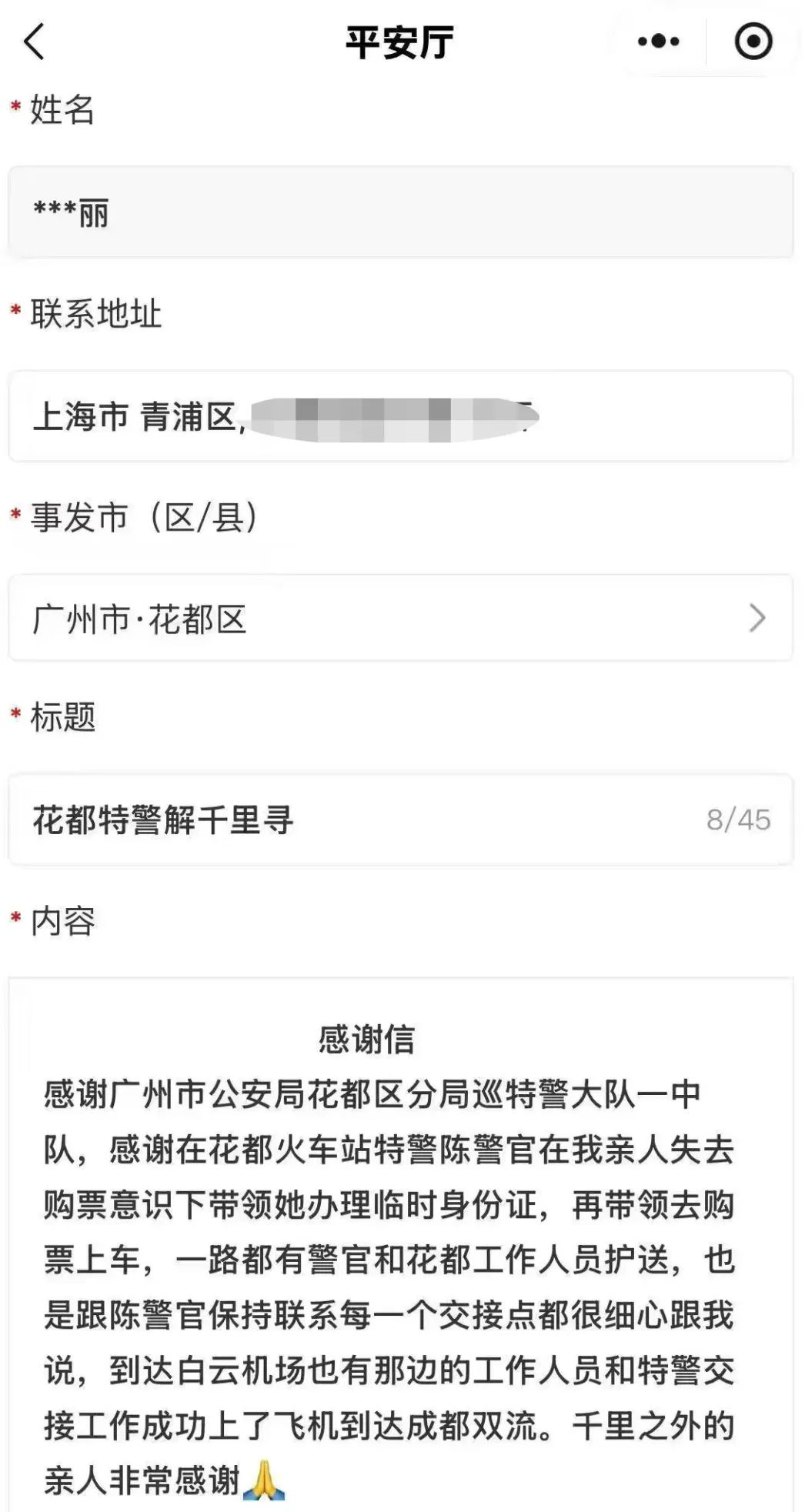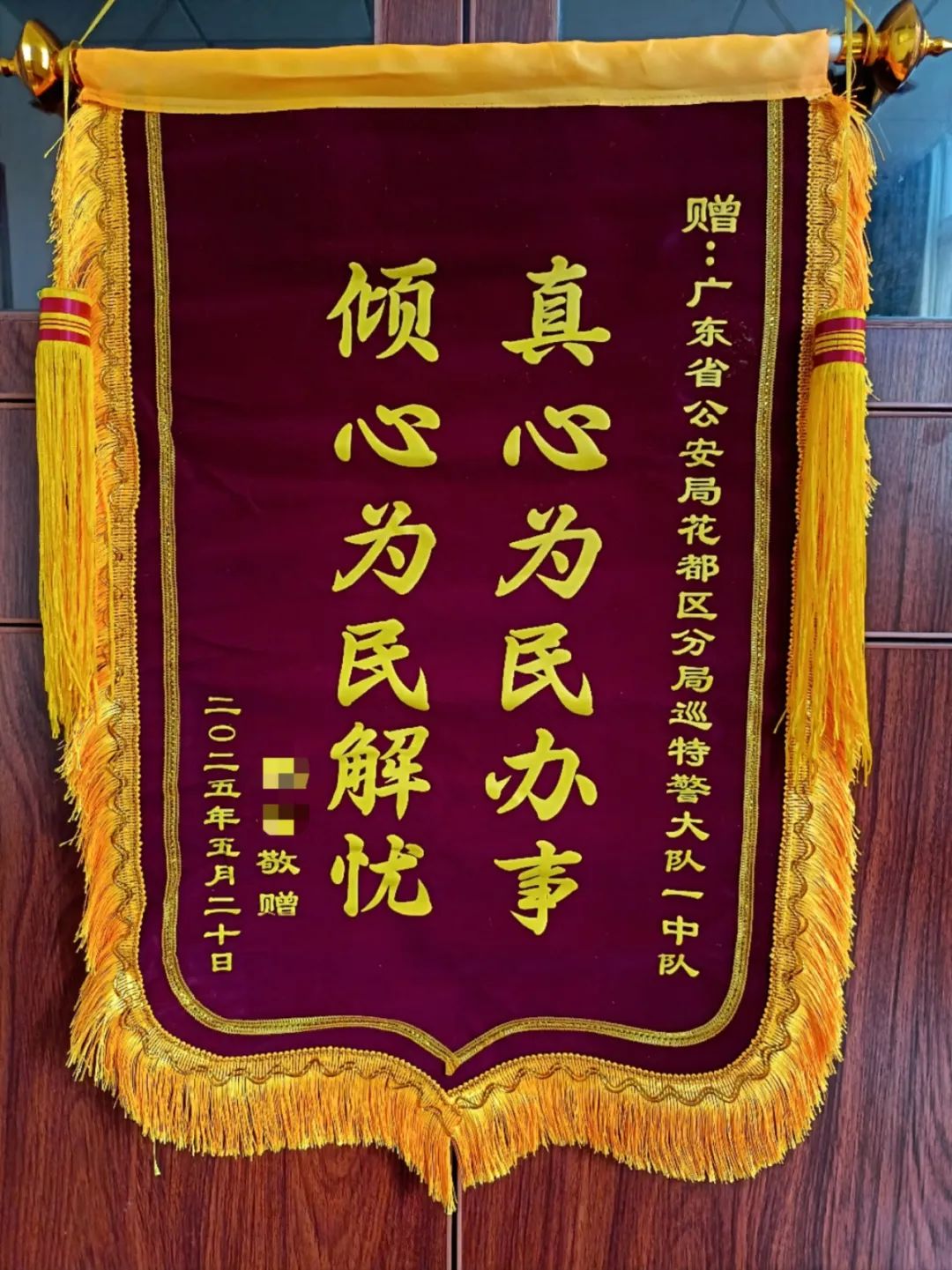 女子安全抵达家乡后,其家属特意致电陈警官,对花都特警的暖心帮助表示衷心感谢。为表谢意,家属不仅送来了锦旗,还向平安厅信箱投去了感谢信。
